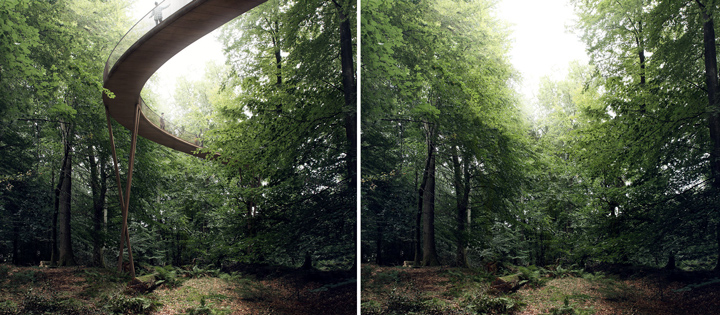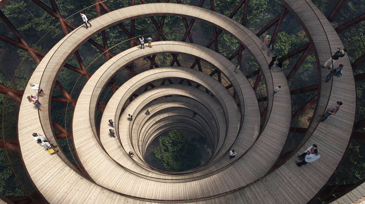"پارک کمپ ادونچر" مکان توریستی جدید و منحصر به فردی است که در دل جنگل حفاظت شده کشور دانمارک واقع شده است. مسیر پیاده رو به طول 900 متر با عبور از میان درختان به برج تماشا با 45 متر ارتفاع متصل می شود و موقعیت ویژه ای را برای قدم زدن در ارتفاعی بالاتر از درختان و لمس طبیعت فوق العاده جنگل حفاظت شده از زاویه ای دیگر ایجاد می کند. برج و مسیر پیاده میان درختان، رمپ پیوسته ای است که دسترسی به جنگل را برای تمامی افراد با هر شرایط فیزیکی امکان پذیر می نماید.