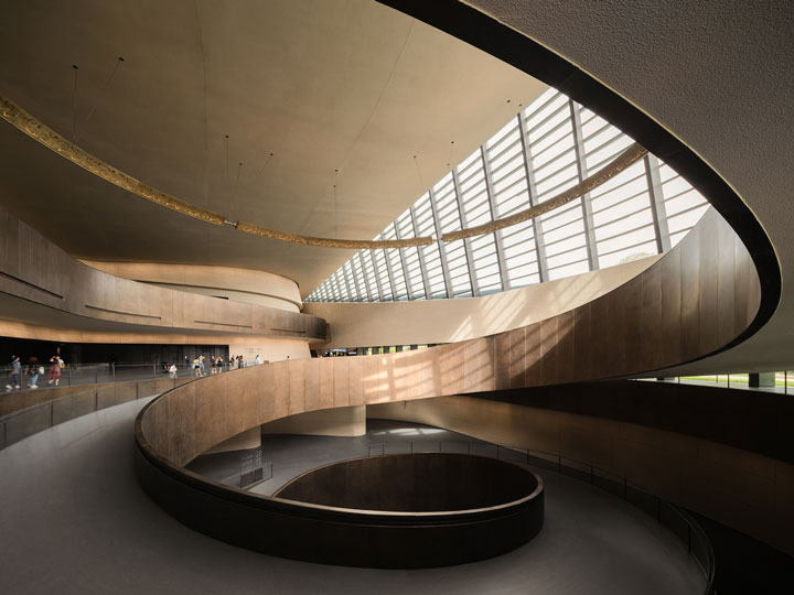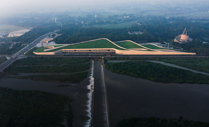 محل قرارگیری موزه جدید در شمال محور مرکزی پارک، به طول ۴۰۰ متر، نزدیک خاکریز رودخانه واقع شده است. در چنین مکان وسیعی، فرم ساختمان با پیروی از توپوگرافی و بافت سایت (سه ویرانه تپهای شکل به جا مانده از پادشاهی باستانی شو) به فرم سه تپه مواج درآمده است. سطح هندسی ساختمان تپهای شکل از موزه قدیمی شماره ۲ الهام گرفته شده است. این طرح، دیوار بیرونی مارپیچ کلاسیک ساختمان قدیمی را به بیرون امتداد میدهد تا به عنوان منحنی مرجع برای شکلدهی به فرم و فضای سه تپه عمل کند.