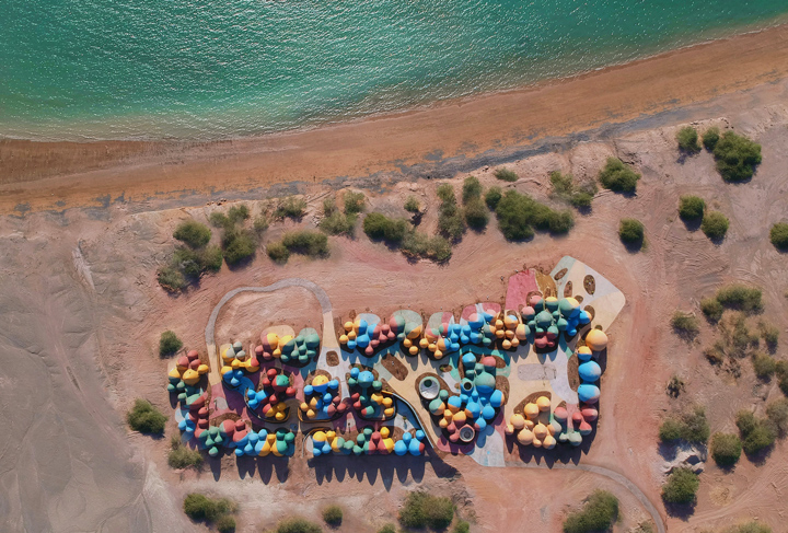 تعداد بینهایت ذرات رنگارنگ از خاک، شن، ماسه یا سنگ، روی هم انباشته میشوند و توپوگرافی رنگینکمانی جزیره هرمز را تشکیل میدهند. پروژه "حضور در هرمز" مجموعهای از توسعههای شهری با طراحی دفتر معماری ZAV میباشد تا جامعه محلی جزیره را توانمند سازد. فاز دوم آن یک اقامتگاه فرهنگی چندمنظوره به نام اقامتگاه ماجرا (به معنای ماجراجویی) است که زندگی مردم محلی و بازدیدکنندگان را از نظر فرهنگی و اقتصادی بهم پیوند میدهد.