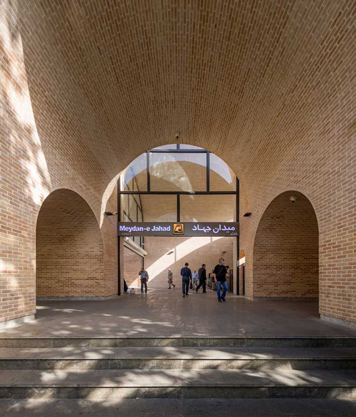 در تعریف استراتژی هندسی و فرمی این پروژه، شکاف بین فضای متروی پایینی و طبقه همکف بالا الهام بخش طراحی شد. این چالش ما را به سمت ترکیبی از قوسهای هندسی سوق داد؛ فرمهایی که نمایانگر فضاهای زیرزمینی و عملکرد آنها بودند. با چیدمان این قوسها، منطقه زیرزمینی مترو را تغییر دادیم به طوری که ورودی متروی همکف به یک "هزارتوی شهری" و فضای مکثی برای عابران پیاده و مسافران تبدیل شد. این طراحی یکپارچه و منسجم، نیازهای متنوعی را برآورده کرد، تجربهای پویا و چندوجهی برای کاربران به ارمغان داشت و از طریق هماهنگی فرم و فضا، به ورودی مترو هویتی متمایز و منحصر به فرد بخشید.