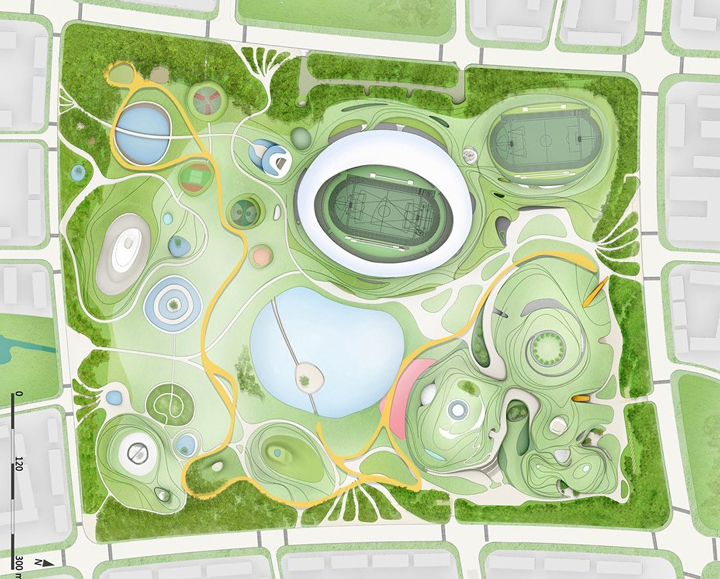 این پروژه در حدود 700.000 متر مربع را دربرمی گیرد. ساختمان های فاز اول و دوم آن دارای مساحتی در حدود 340.000 متر مربع هستند که شامل فضاهایی چون یک استادیوم (با ظرفیت 30.000 نفر)، باشگاه ورزشی (با ظرفیت 10.000 نفر)، استخر شنا (با ظرفیت 2000 نفر)، مجتمع ورزش های ملی، محل برگزاری ورزش های فضای باز، موزه علم و فن آوری، اقامتگاه، هتل، مرکز جوانان و خرده فروشی می باشند.