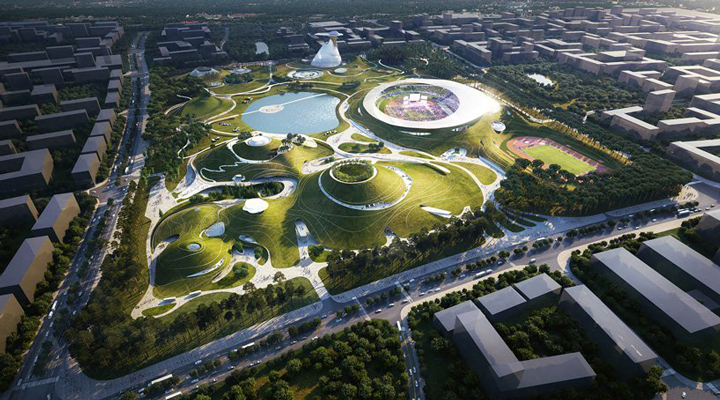 "شهرک ورزشی کوجاو" توسط شرکت معماری "MAD Architects" و به سرپرستی "ما یان سانگ" طراحی شده است. مرحله خاک برداری این پروژه در شهر تاریخی کوجاو، در کشور چین، آغاز شده است.
